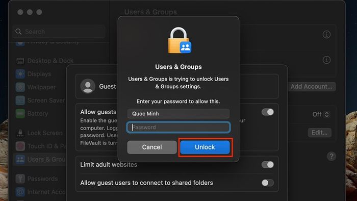 Step 3: After clicking Done, your computer will prompt you to enter your password to confirm > enter your password > then click Unlock to confirm.