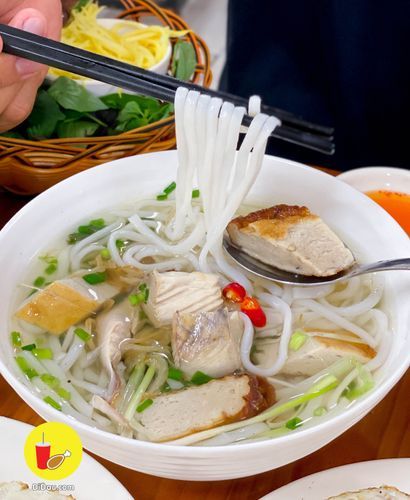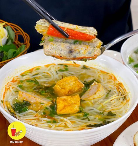 The next 39K dish is the Bún/Bánh Canh Chả Cá Dầm. You can choose between Bún or Bánh Canh noodles. It's a feast with both Chả Cá and Dầm Fish. The broth is naturally clear and sweet, the fish cake is firm, and the fish is tender, making it incredibly delicious.