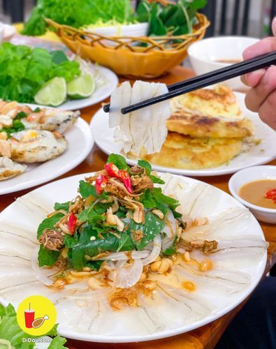 The Goi Ca Mai has made the restaurant renowned, with the Mai fish prepared to perfection. The fish meat is tender and sweet, blending with the spicy-sour flavor of the lime chili sauce, accompanied by a bit of crunchiness and the aroma of peanuts. It's usually served with rice paper and a handful of fresh vegetables.