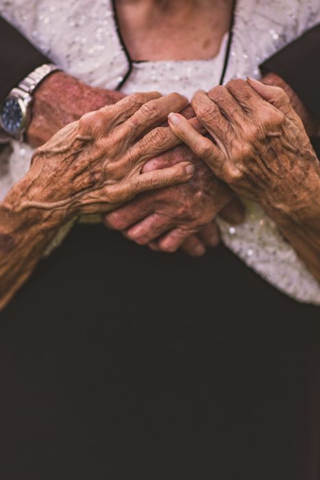 Elderly parents holding hands
