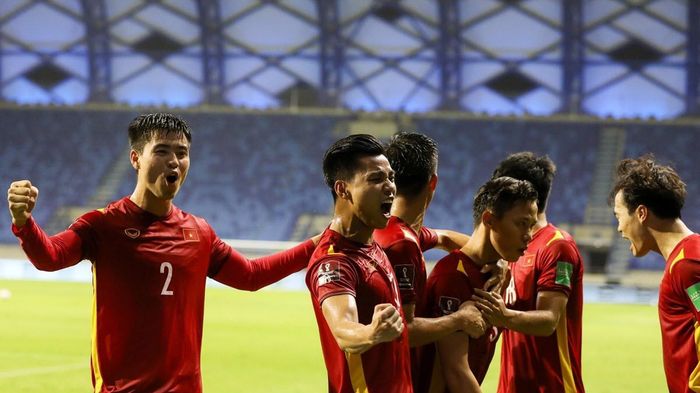 Images of the Vietnamese national team celebrating a goal