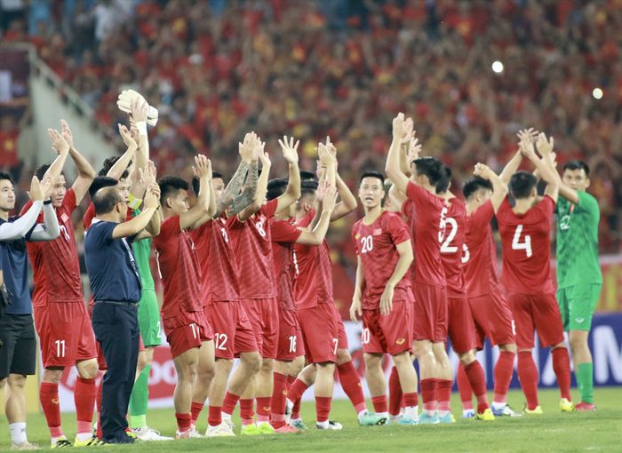 Photos of the Vietnamese national team greeting the fans together