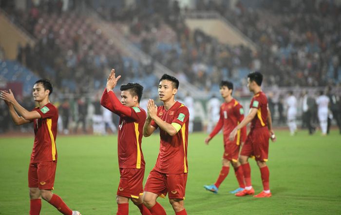 Photos of the Vietnamese national team expressing gratitude to the fans