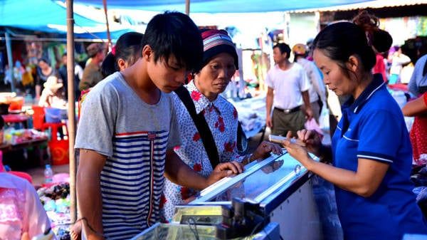 In the market, food stalls, especially the victorious ones, are often crowded. Now, there are also tea stalls reminiscent of those downstream. Ice cream is a favorite among children and youth, even though the ice cream here is predominantly made from crushed ice. With the advancement of information technology, mobile phones are also available for sale at electronic stalls.