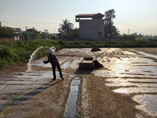 The sky is exceptionally blue, and the grass sparkles in the sunlight. Not flawlessly picturesque like the salt fields at sunrise or sunset, adorned with high, abundant salt mounds, on the land of Tam Đồng village, the simplest stories and images of life straighten their path into the heart.