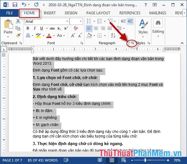 Step 1: Highlight the text you want to format -> Go to the Home -> Paragraph -> click on the arrow: