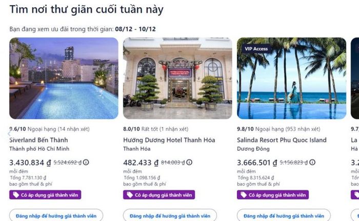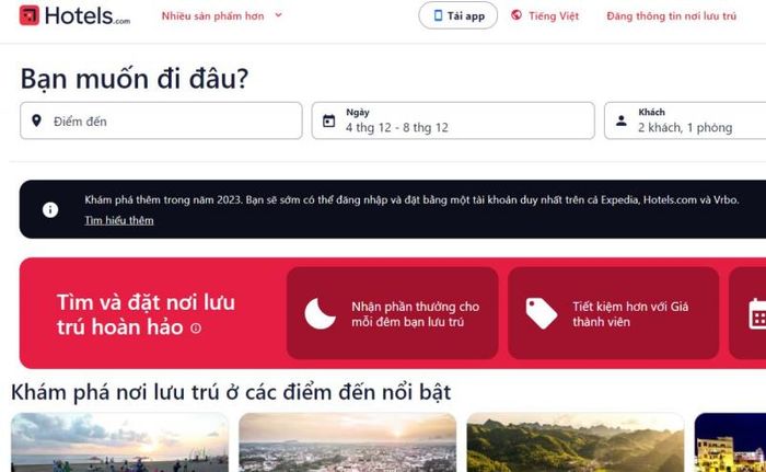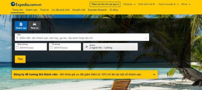 Expedia.com.vn is certainly among the top trusted OTA channels worldwide. Its website features a clean, colorful interface that is easy to navigate. It connects with most banks, allowing users to make payments from various bank accounts. The site offers a diverse range of accommodations, from luxury to budget-friendly options, and frequently provides promotional deals, even during peak travel seasons.