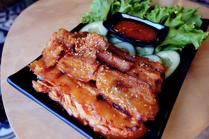Kim Grill House is widely known as a Korean BBQ restaurant, but few know that it also serves hot pot dishes. If you're a BBQ lover or a fan of Korean cuisine, this place is a must-try. The spacious and airy environment makes for a comfortable dining experience. The meat here is fresh and tender, with the most popular dishes being beef brisket and short ribs. The meat is lightly marinated in a traditional Korean style, allowing the rich flavors of the dipping sauces to shine. Kim Grill House offers three different dipping sauces: tamarind, black pepper, and soy sauce. To enhance the flavor, you should pair the grilled meat with kimchi. Besides BBQ, the restaurant also serves a variety of other Korean dishes, such as salad, tteokbokki, kimchi rice, black bean noodles, kimbap, and mixed noodles. The staff is friendly and always attentive, ensuring a pleasant dining experience. This is a restaurant you’ll definitely want to visit again! The meat is not pre-marinated in sauces but seasoned with light spices and pepper to enhance its natural sweetness. When paired with spicy kimchi and a flavorful sauce, the taste is simply irresistible.