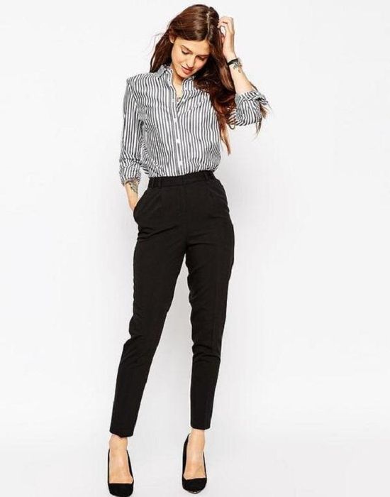 Feel free to mix and match your black trousers for any occasion, whether for work, a day out, or a casual date. They're always comfortable and practical. So, hurry up and choose a pair that suits you best. The classic black trousers are universally flattering, regardless of age or gender. A wardrobe essential that never goes out of style. With these trousers, you can easily pair them with a shirt, blazer, or even a cardigan, and don’t forget a pair of heels to enhance your office look. To add a youthful vibe, choose a pair of trousers that complement your figure and hide any flaws, especially in the leg area.