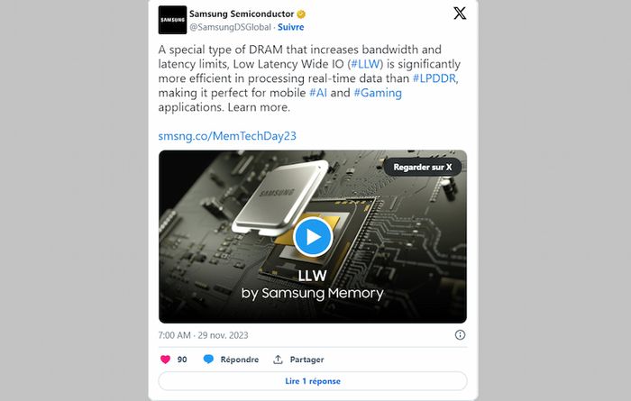 The introduction video also features an image of a phone integrated with LLW DRAM, resembling the rendered image of the Galaxy S24. Therefore, the upcoming Galaxy S23 could potentially be the first Samsung phone to utilize this technology.