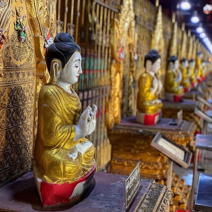 The special feature of the main temple is the Buddha statue sculpted in 1966, measuring 65m in length and 30m in height. By 1907, the statue was completed. It is currently the largest Buddha statue in Myanmar. The head of the Buddha statue faces East, while the face looks towards the South. The facial expression of the Buddha statue is very serene, adorned with a crown encrusted with diamonds and gemstones. The pure image, the compassion of the Buddha, dispels all worries and troubles of the faithful and visitors when they come to visit.