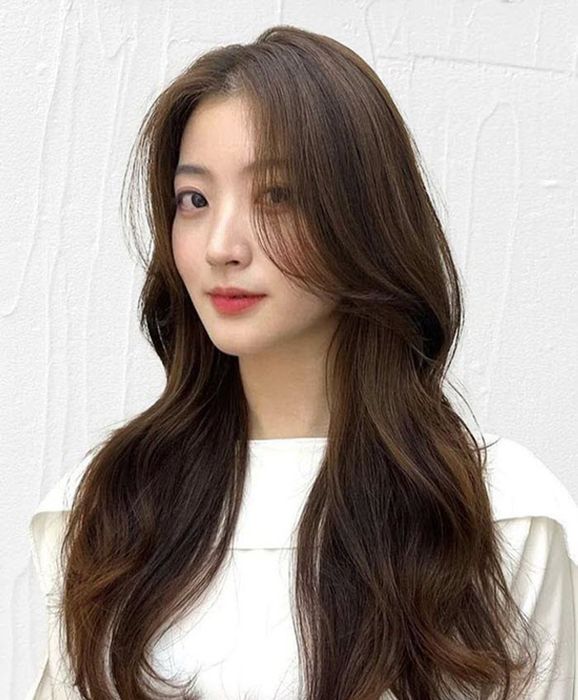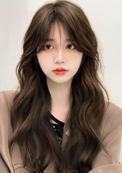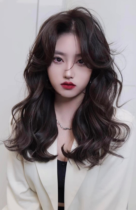 The wavy curl hairstyle involves gently curling the hair, creating a natural and voluminous appearance. This style accentuates grace, cuteness, youthfulness, highlighting the modern charm and allure of contemporary women.