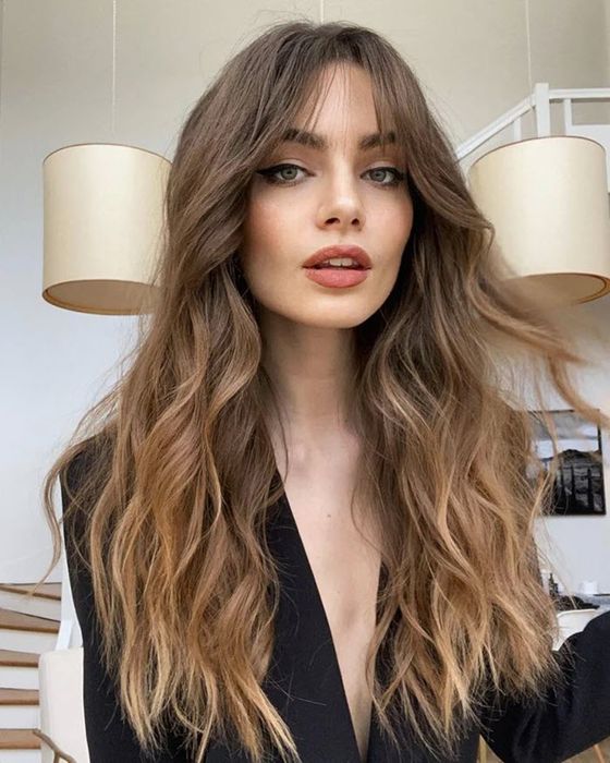 Wavy Curl Hairstyle with Long Airy Bangs