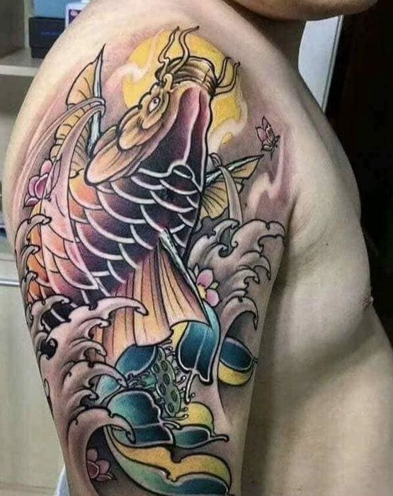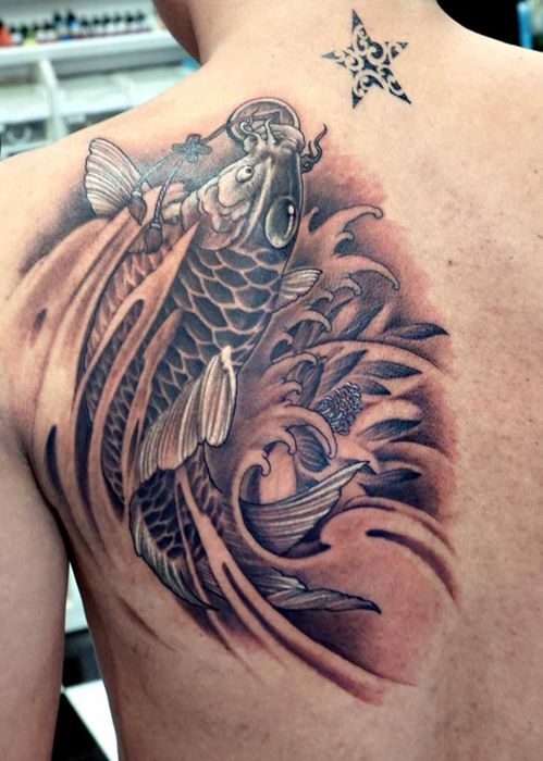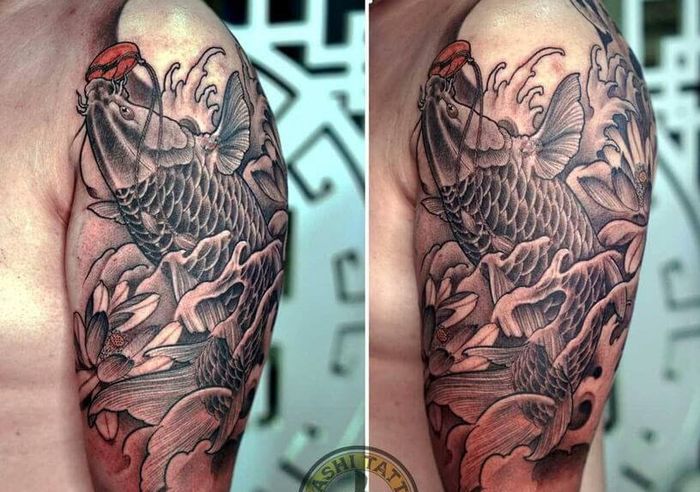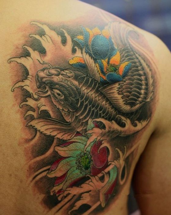 Ink Perfection: A Shoulder-Made Koi Fish Masterpiece