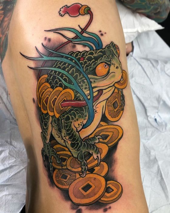 Prosperity-Bearing Frog Tattoo in Exquisite Design