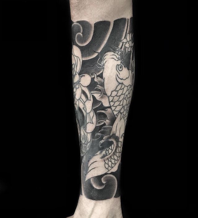 Exquisite Koi Fish and Lotus Tattoo in Stunning Design