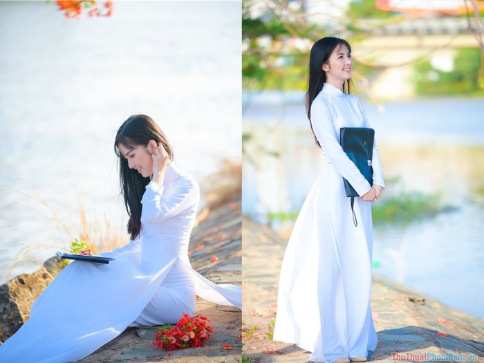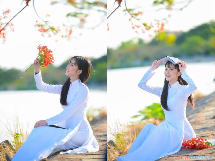 When reminiscing about school days, one cannot overlook the elegance of school uniform ao dai paired with black leather-covered notebooks. However, capturing the essence of the School Uniform Ao Dai Photography Concept can be challenging, as the timing must align with the peak bloom of the vibrant phoenix flowers. Typically, the red phoenix flowers bloom from May to July during the summer months.