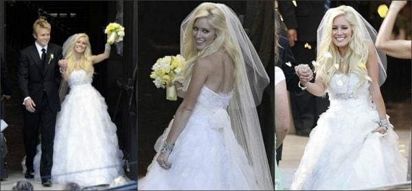 Hilary Duff also opted for a Vera Wang fishtail wedding dress. The tiered fishtail train floating gracefully on chiffon fabric made her look like a mermaid princess.