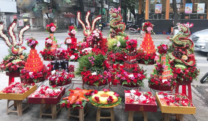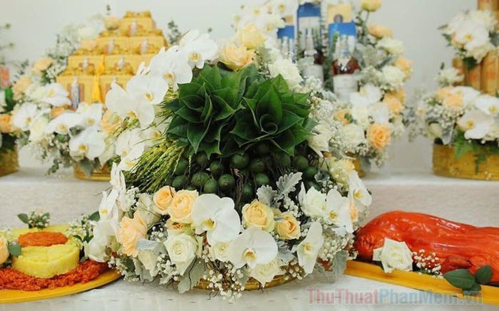 Nowadays, there's a wide variety of trays available. Typically, 7-tray and 9-tray setups are the most common, while families with slightly better conditions might opt for 11, 13, or 15 trays. A complete tray must include betel leaves, tea, wine, cakes, fruits, and can be supplemented with roasted pig, sticky rice, beer, soft drinks, etc. Below are images compiled by SoftwareTips to showcase to you.
