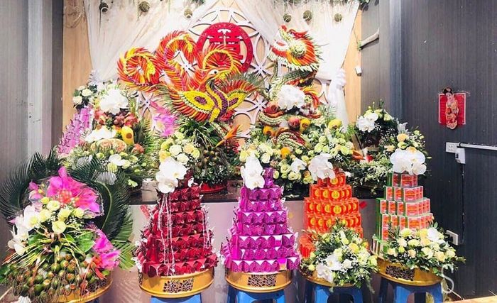 A wedding is the most significant event in one's lifetime, requiring meticulous preparations. According to Vietnamese wedding customs, during the engagement ceremony, the groom's family must prepare trays to bring to the bride's house. The number of trays depends on the groom's family's circumstances, but they must be absolutely complete, as they signify sincerity and respect from the groom's family to the bride's. Here are some suggestions for the most beautiful wedding fruit trays for engagement ceremonies.