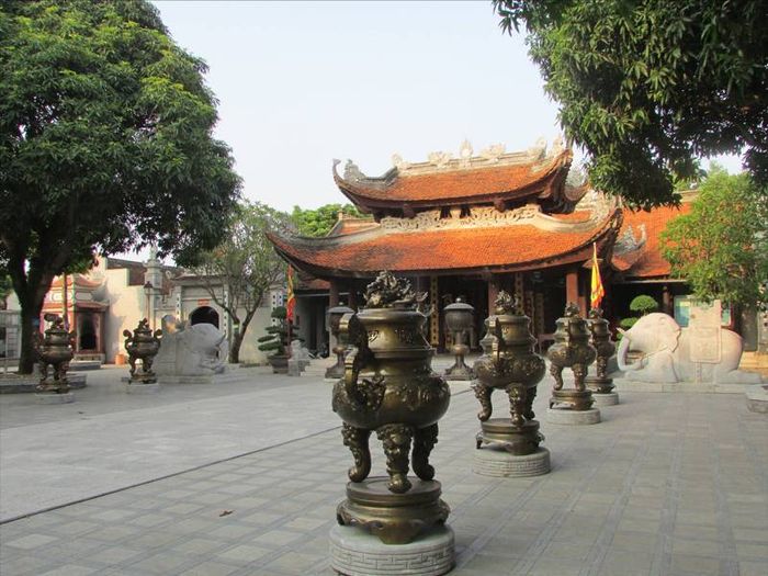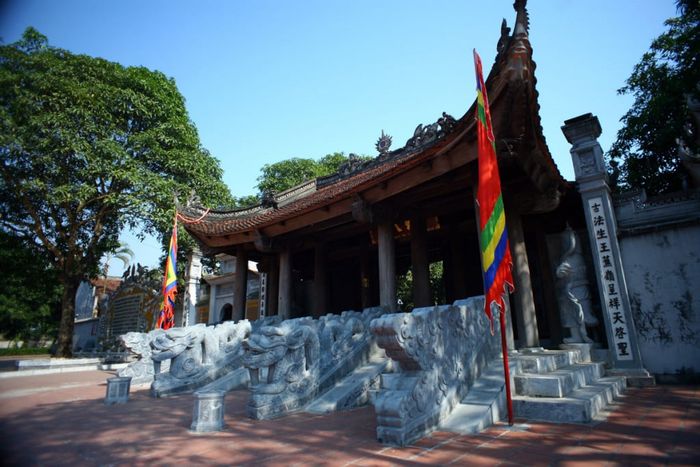 The entrance to the inner citadel of the temple is the Five Dragon Gate, adorned with two gate wings carved with five dragons. Whenever the gate opens, the five dragons soar high into the air. The central area of Đô Temple is the main hall, housing the altar of King Ly Thai To, flanked by two guardian cranes.