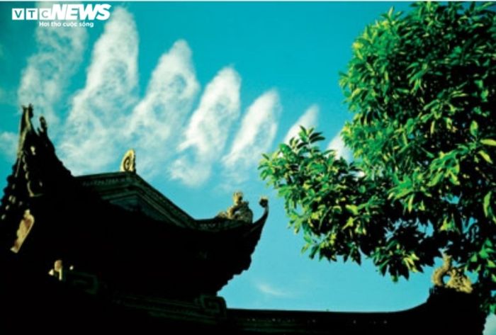After centuries, Đô Temple witnessed a peculiar natural phenomenon as a golden dragon-shaped cloud streaked across the sky towards Hanoi, just as the villagers began the ritual procession of 'Linh bai Ly Thai To and the Capital Relocation to Thang Long' following ancient customs.