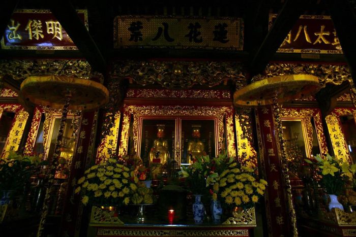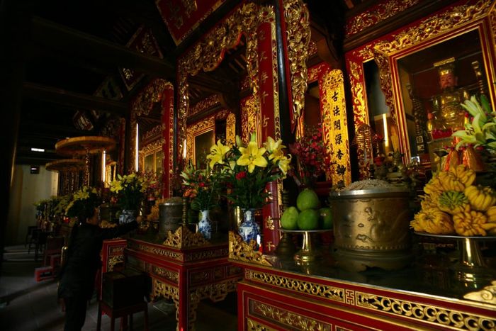The center of the inner citadel is also the main hall. The main hall consists of an octagonal pavilion with 3 spacious roofs covering up to 70 m². Behind the main hall is the imperial palace spanning 220 square meters, housing the royal throne, offerings, and statues of the 8 kings. Within the temple's interior, there are also the sedan chair house, the ante-house, the house for ceremonial palanquins, and the house for horse offerings.
