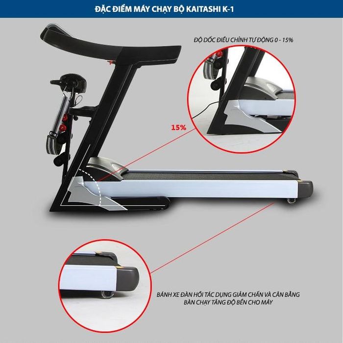 The Kaitashi K-1 Electric Treadmill is a versatile model designed for households, researched and manufactured by leading Japanese engineers using the most advanced and modern technology. It features a modern design with unique aesthetics, adding a touch of sophistication to your home space. Equipped with a 3.5 HP DC motor peaking at 6.8 HP, this treadmill boasts a robust and durable frame capable of supporting up to 150kg, ensuring peace of mind during intense workouts. Specifications: Speed: 1.0-16 KM/H, Calories: 0-100%, Motor: 3.0HP DC, Running Surface (L * W): 1360 * 520mm, Extended Size: 181 * 141 * 67cm, Large LCD screen, MP3 music playback.