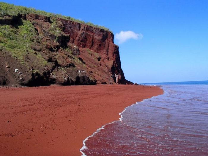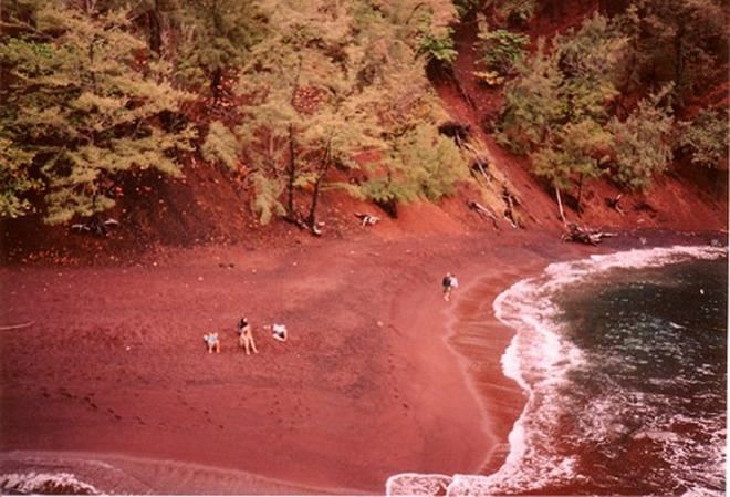Red Sand Beach, also known as Kaihalulu Beach, is a small beach located in Kaihalulu Bay on the island of Maui, Hawaii, near Kaʻuiki Head. The name Kaihalulu comes from the Hawaiian words kai halulu, meaning "roaring sea." Located in the tropical paradise of Hawaii, this beach is particularly notable for its striking blood-red sand. Visitors who love the color red and enjoy swimming in unique settings often choose Kaihalulu Beach in Hawaii or Rabida Island in the Galapagos archipelago.