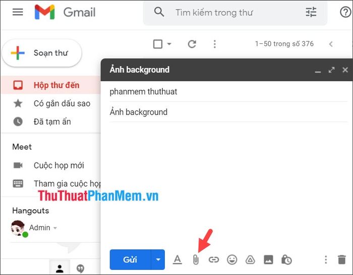 Step 3: You will see the image name and size appear in the attachment name section without displaying the image in the email as instructed in the previous section. Click Send to start sending the image.