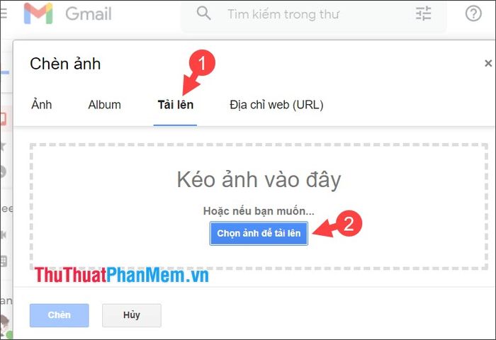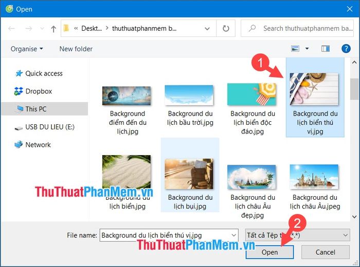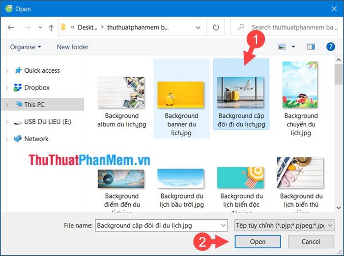 Step 2: Choose the image you want to send (1) from your computer => Open (2).