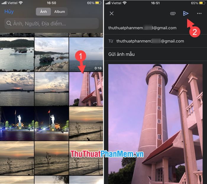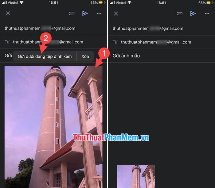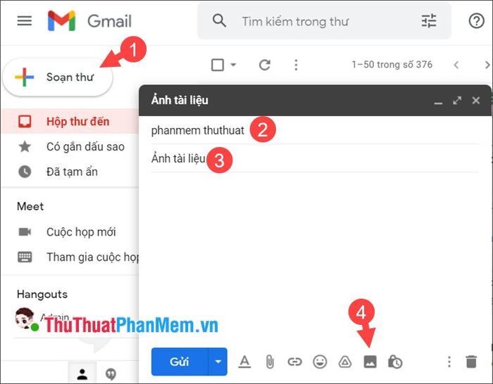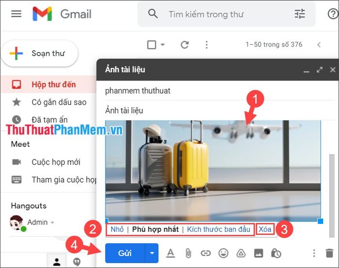 After completing the settings, press Send (4) to start sending the image via Gmail.