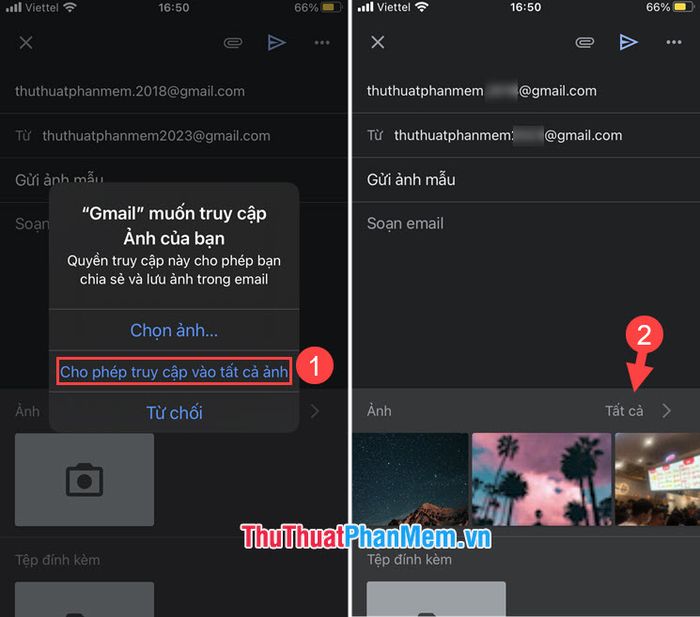 Step 2: Grant permission Allow access to all photos (1) => All (2).