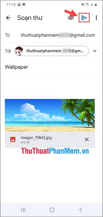 Step 3: Tap on the Send icon to send the email with attached image to the recipient.