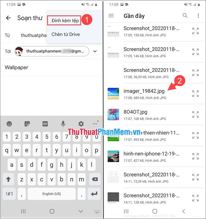 Step 2: Select Attach File (1) => open the image you want to send (2).
