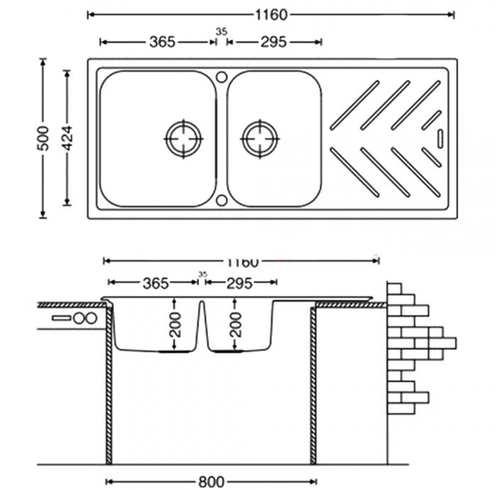 Dimensions of a single-basin sink (Length x Width x Depth):