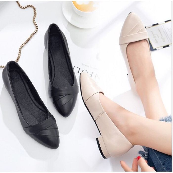Affordable ballet flats come in various materials, with synthetic leather, fabric, and suede being the most common. However, it's advisable to choose budget-friendly ballet flats made of synthetic leather. With modern production technology, these affordable shoes still boast beautiful designs, relatively durable materials, comfortable fit, easy cleaning, and aesthetic appeal.