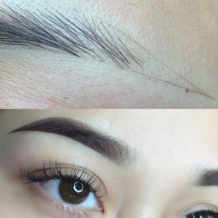 - The modern 2019 eyebrow embroidery technology we use, featuring an ultra-fine, sharp, and 100% antibacterial blade, allows for natural, beautiful lines without pain or swelling. This method overcomes many drawbacks of traditional tattoo techniques.