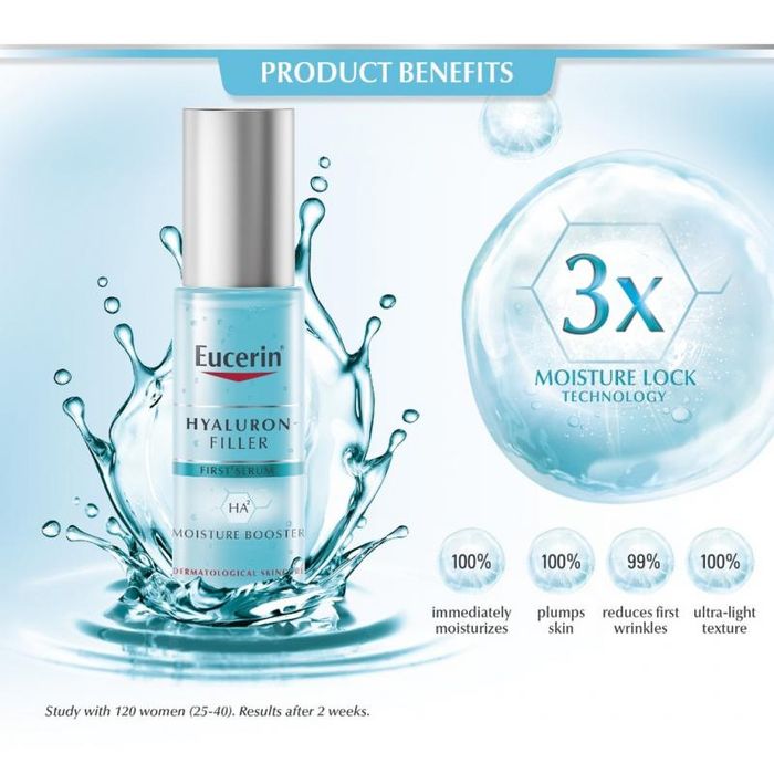 With the combination of 3 superior active ingredients forming Hyaluron [3X]+Filler: Long-chain Hyaluronic Acid, Short-chain Hyaluronic Acid, Glycerin. Eucerin Moisture Booster has been proven to significantly reduce wrinkles and prevent signs of aging.