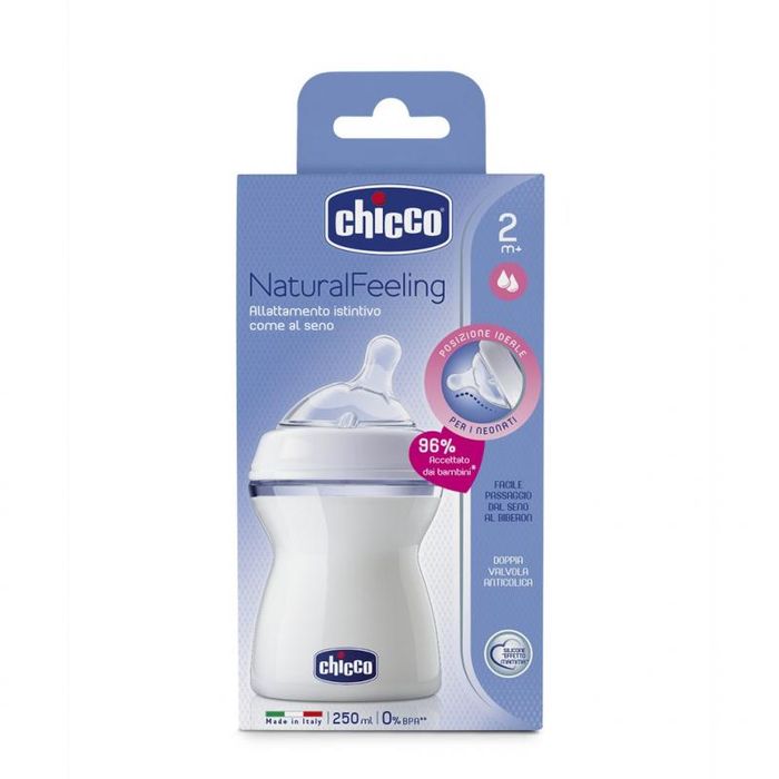 4. Chicco Natural Feeling 2M+ Pisa Inclined Teat Baby Bottle 250ml