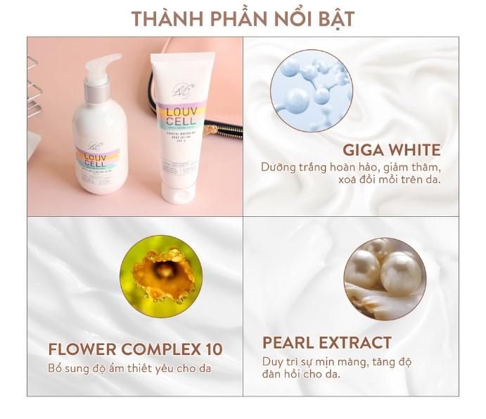 Louv Cell Crystal Whitening Body Lotion is formulated with Vitamin C and Hyaluronic Acid, which help the skin become smooth, fair, and pink without blemishes. It can be applied immediately after bathing to provide moisture to nourish the skin cells from deep within, effectively preventing signs of aging due to age or environmental factors. Moreover, Louv Cell Crystal Whitening Body Lotion is completely extracted from natural ingredients, free of irritants, very gentle and friendly to the skin and health of users. The lotion is quickly absorbed into the skin, naturally helping the skin become fair, pink, smooth, and fresh.