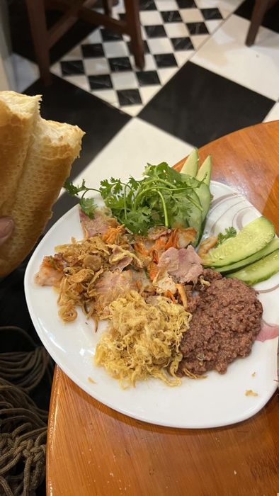 If you're craving a hearty bowl of bún ốc, Bún Ốc Sườn 57 is a must-visit. Their bún ốc comes loaded with snails, crispy tofu, tender pork ribs, and pig’s blood. The bowl looks appetizing even before you dig in – full, fragrant, and packed with textures. The broth is light yet tangy, complemented by the distinctive aroma of fermented shrimp paste. The addition of crispy dough sticks makes it even more irresistible. With a price of just around 30,000 VND, it’s an affordable and popular spot for locals and visitors alike. The fresh toppings are served with a side of vegetables for easy enjoyment.