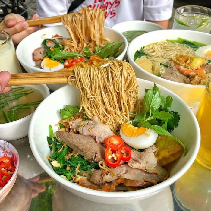 Wonton Noodles, originally from Guangdong, China, were introduced to Hanoi in the 1930s. What started as a Chinese dish gradually became a beloved staple in the capital. The rich, flavorful broth, subtly sweet, always draws in food lovers. A bowl of wonton noodles, brimming with dumplings, shrimp dumplings, blood pudding, meatballs, and slices of char siu, is irresistible. With the delightful taste of the broth and the combination of ingredients, this dish is the perfect nutritious and delicious breakfast choice.