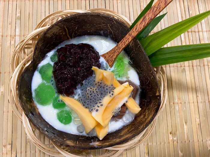 At WanWan Thai Desserts, the owner uses fresh pasteurized milk combined with various colorful fruits to make the dessert bowl even more attractive. Especially the mixed Thai dessert bowl has a whole jackfruit segment, which is very rich and delicious. The coconut milk is not too thick, with added ice it's cool and just sweet enough, suitable for everyone. Other toppings are also generously provided, the fruits are very fresh and cut into suitable pieces. The desserts are served in comfortable bowls and beautifully arranged, perfect for those who love to take photos. In addition, the shop also has a mango sticky rice dish that is very authentic Thai flavor and loved by many customers.