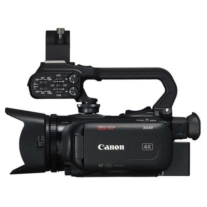 The Canon XA40 is an entry-level professional 4K camcorder that offers advanced controls. Featuring Canon's 4K video system, including a 4K CMOS image sensor, DIGIC DV 6 image processor, and 4K video lens, it delivers top-quality images through HD oversampling. This technique uses data from the 4K image sensor to record full HD video.