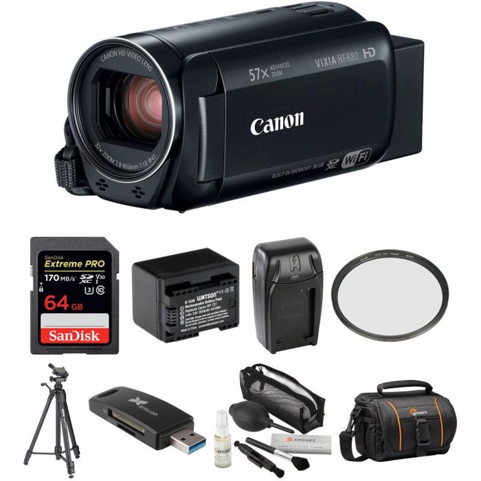 The Canon VIXIA HF R80 camcorder offers exceptional value, priced at nearly half the cost of its professional competitors, yet still capable of recording 1080p video at up to 60 FPS with impressive clarity. This model shares many features with the R800 but at a much more affordable price point. One of the standout features of the VIXIA HF R80 is its powerful 57x advanced zoom, allowing you to capture shots from nearly any distance. Coupled with ultra-wide optical image stabilization, it ensures clear and steady footage even when zooming in from afar.