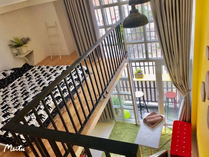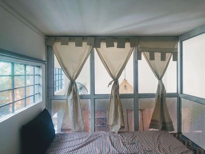 The spacious courtyard of Ccasa Hostel is designed in a Western style, resembling a trendy cafe rather than a traditional hotel. Guests are also drawn to the rooftop area, where netting is stretched across the skylight, adding to the hostel's charm. Accommodations include dorm rooms for 6 people at 160,000 VND per person, as well as rooms for 4 people. Ccasa Hostel has become a popular destination for travelers, offering more green spaces to the city and helping reduce its environmental impact. This is a commendable contribution to sustainability.