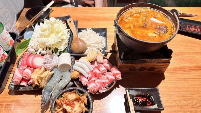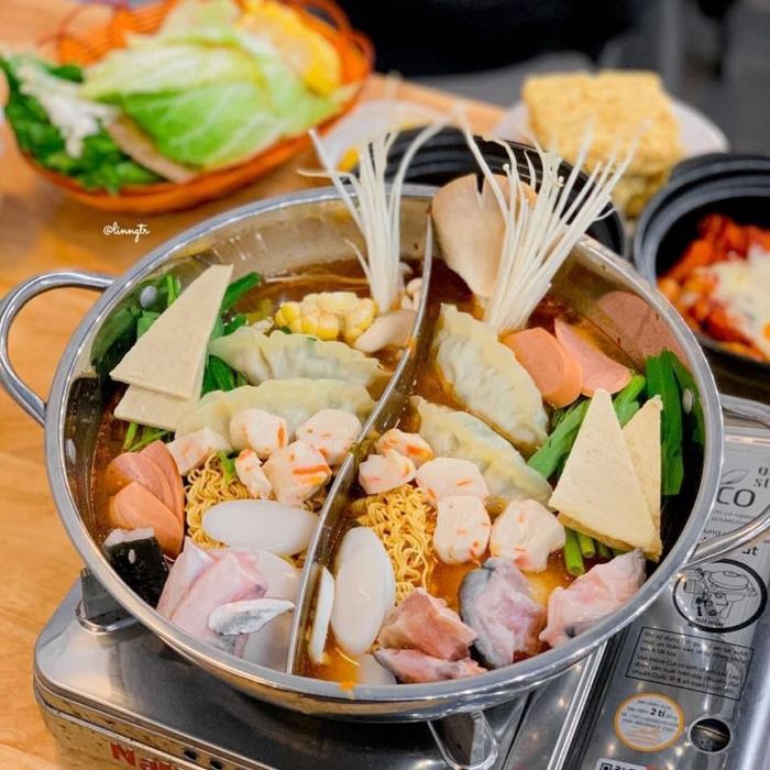 For just 79,000 VND, you can enjoy a delicious hot pot meal for 1-2 people. The broth is well-seasoned and served with fresh seafood like shrimp, squid, fish cakes, and salmon, along with a variety of vegetables and mushrooms. Additionally, you’ll receive a complimentary serving of delicious, authentic Korean kimchi. The restaurant offers a spacious, airy atmosphere, though it's important to note that it uses outdoor seating, so it may be a little warm during midday. Overall, Kimchi House is a great place to consider if you're in the mood for a tasty and unique hot pot experience.