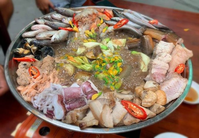 If you're craving a delicious seafood hot pot in Can Tho, look no further than Hải Thịnh Quán, a local favorite that specializes in fresh, high-quality seafood from Cà Mau. Every day, the restaurant carefully selects the freshest ingredients to prepare a variety of seafood hot pots, including shrimp, crab, ribs, squid, clams, oysters, and salmon. The standout dish here is their famous Cà Mau crab hot pot. For just 189,000 VND, you can enjoy a flavorful, tangy, and spicy seafood hot pot that is sure to satisfy.