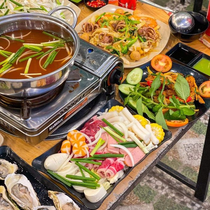 If you're looking for a delicious and affordable hot pot restaurant for your family, look no further than Thích Ăn Uống! True to its name, this place will captivate you with its fantastic Western cuisine and the incredibly appetizing dishes served here. The restaurant offers a high-quality, enticing menu that includes beef brisket, pork belly, shrimp, squid, salmon, enoki mushrooms, hot pot balls, and more, making your meal more exciting than ever. A notable addition to the menu is the variety of goat hot pots, perfect for those seeking something new in Can Tho.